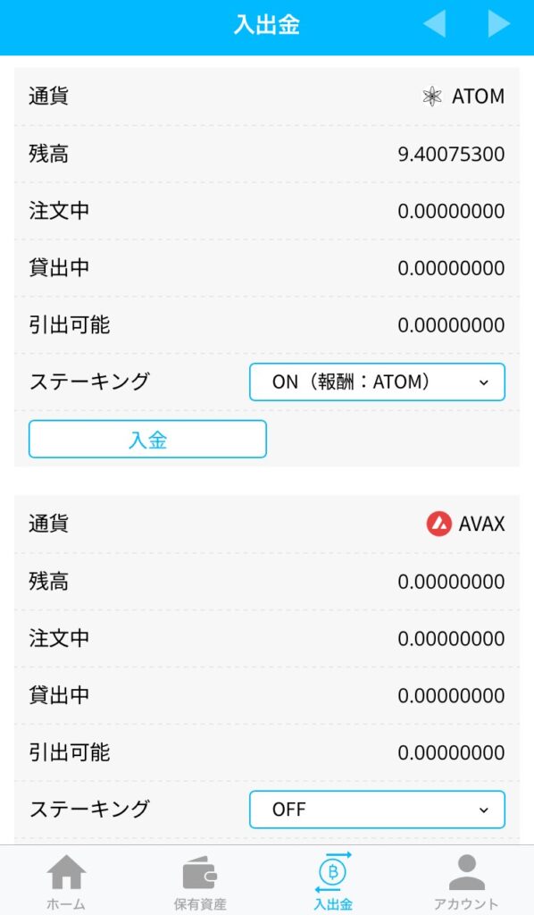 BITPOINTではATOMのステーキングサービスを提供しており、保有するだけで利回りを受け取れます。海外取引所を使わなくても国内で簡単に参加できるのが大きな魅力です。