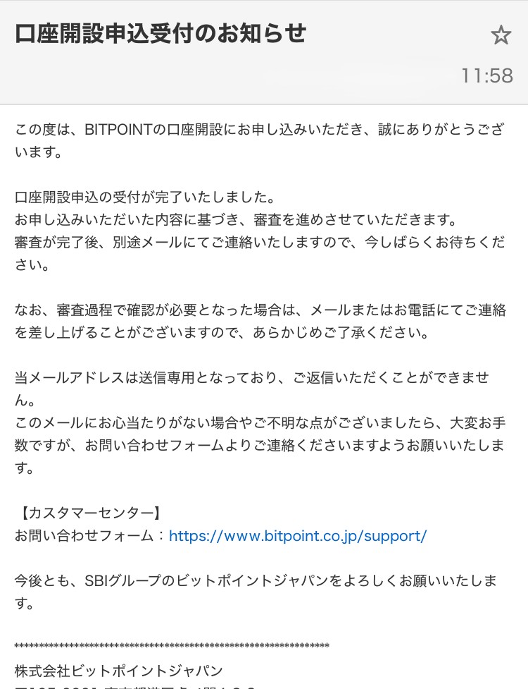 口座開設申込み完了後、すぐに申込受付メールが届いて、その5分後に申込完了メールが届きました👇