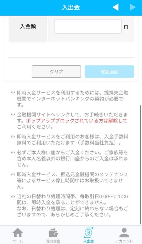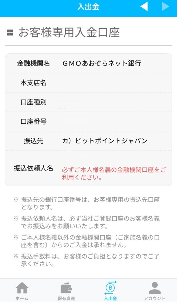 口座が有効化されたら、日本円を入金します。BITPOINTは銀行振込や即時入金サービスに対応しているので、スムーズに反映されます。ここからはBITPOINTのアプリをダウンロードして操作してみてくださいね。