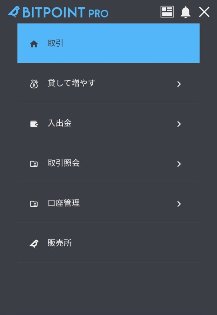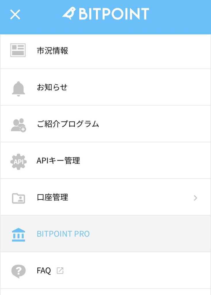 項目 | BITPOINTアプリ(販売所) | BITPOINT PRO(取引所) |