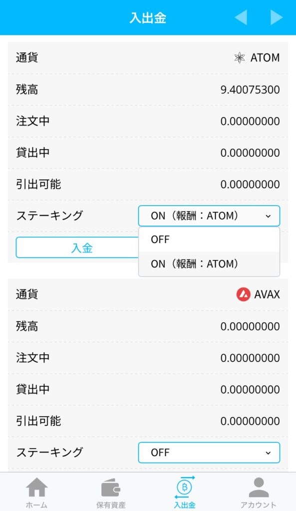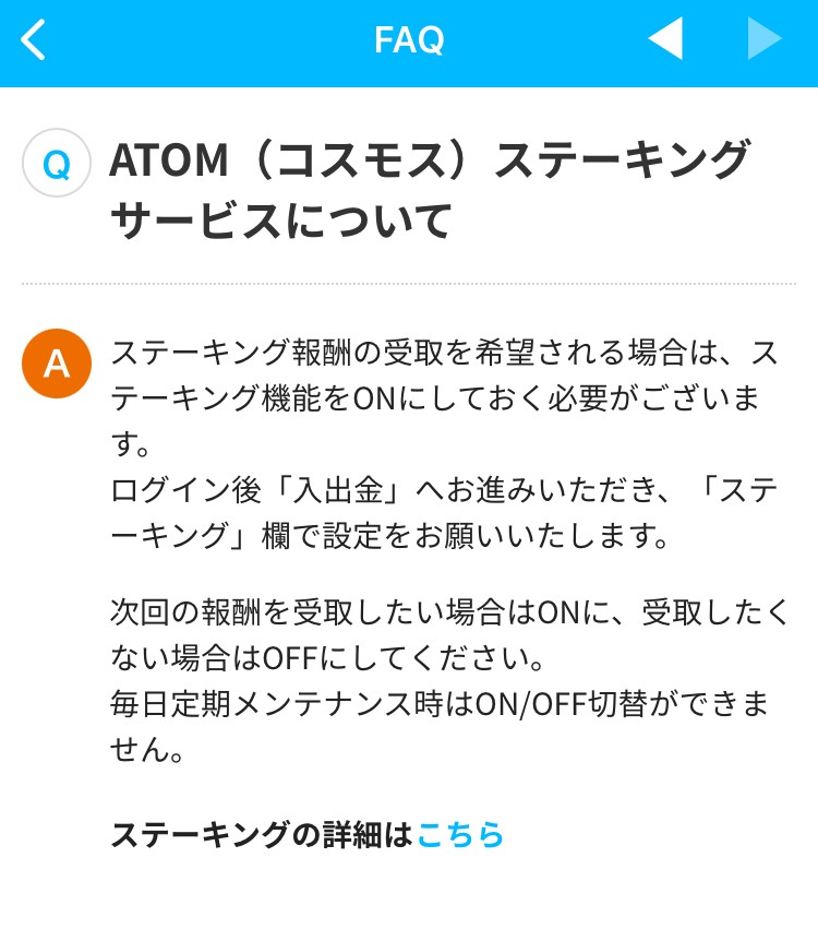 ATOMのステーキングを行うときは、初期設定がOFFになっています!