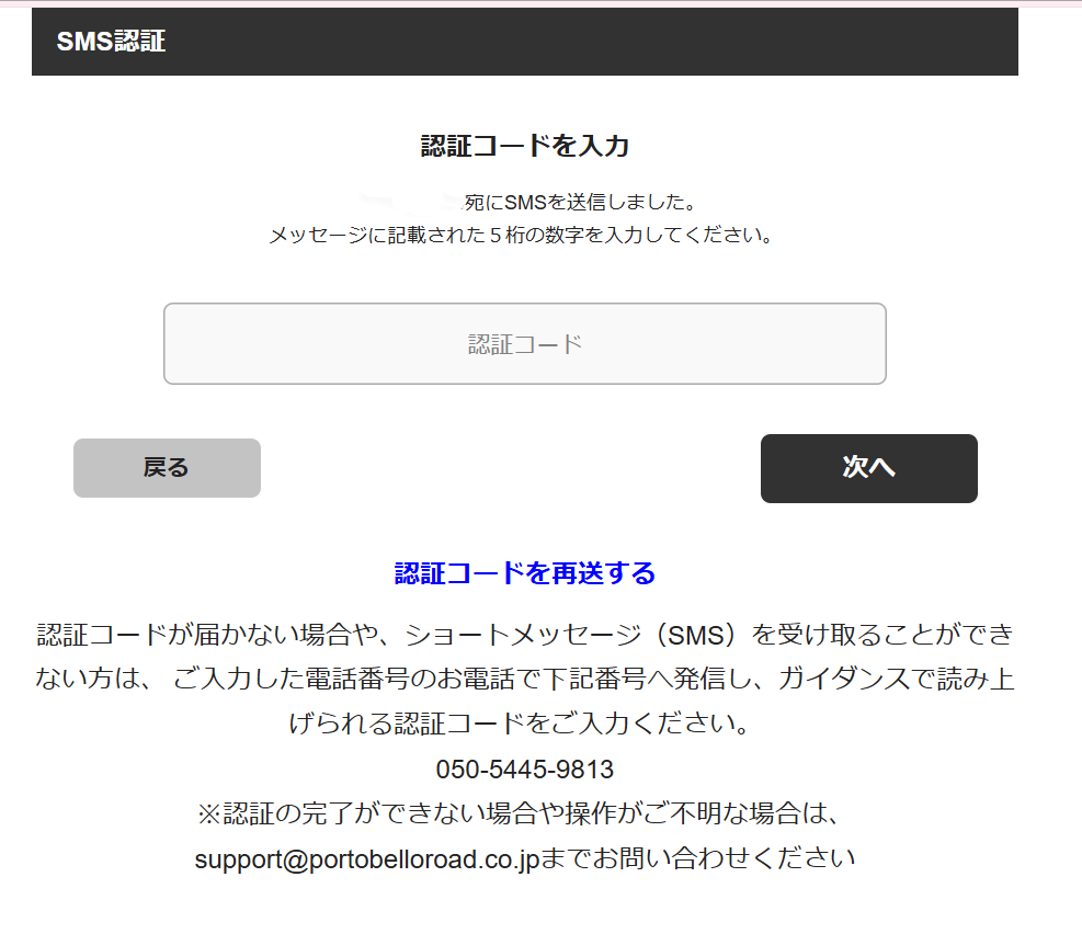 電話番号を入力して、3つの同意項目に✔をいれて、