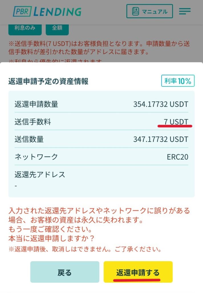 PBRレンディングの指定アドレスへ仮想通貨を送金します。