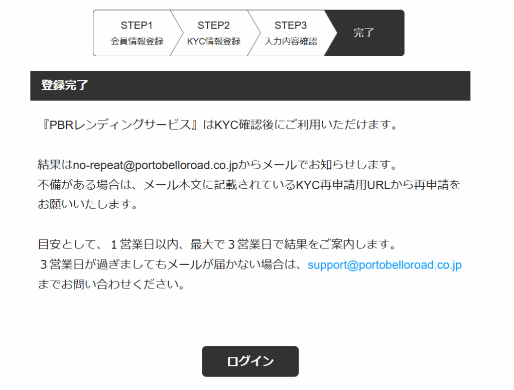 結果がメールアドレス宛に届くのを待って、申請が通ればログインします。