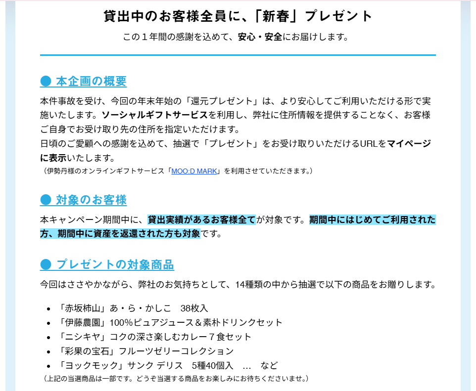 この事故を受け、すべてのお客様に安心してご利用いただくために、全業務を見直し万全を期した上で、本キャンペーンを開催しているとのことです。